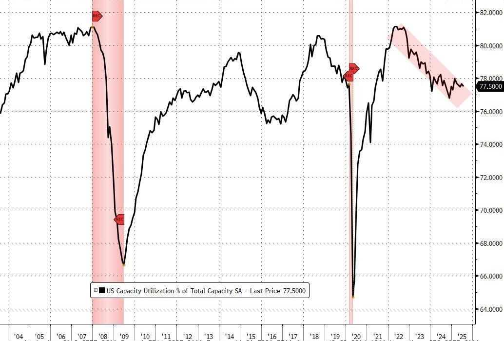 Finally, Capacity Utilization dipped back down in July, back tow its overall trend of the last 3 years