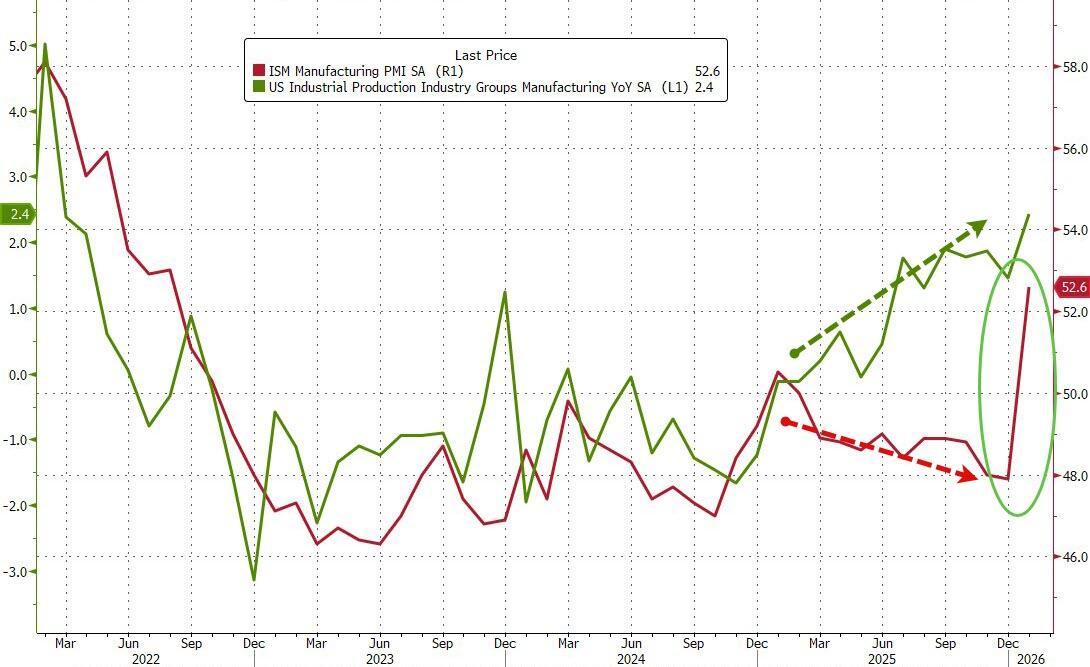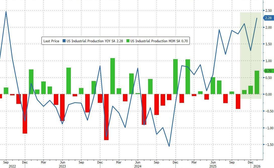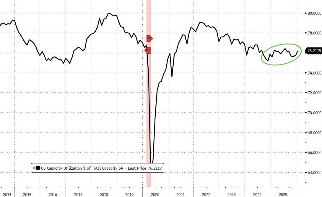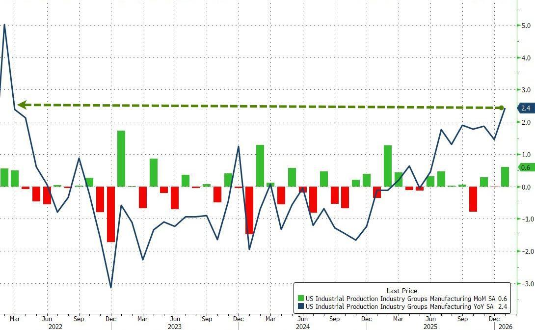 Under the hood, US Manufacturing output rose 0.6% MoM (better than the +0.4% MoM expected and best monthly gain since Feb 2025)...