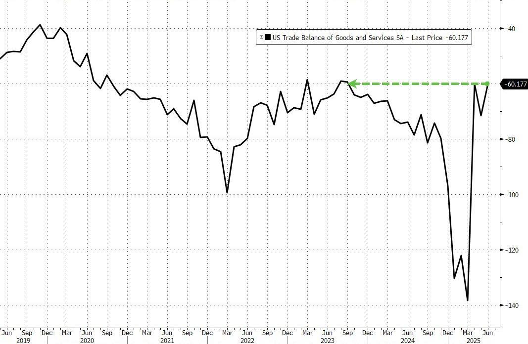 The US trade deficit narrowed in June to the tightest since September 2023 as companies scaled back on imports after a massive tariff-front-running surge earlier in the year.