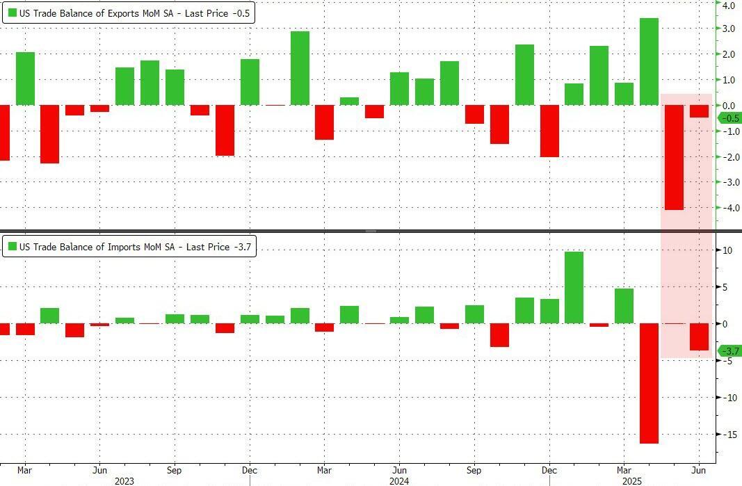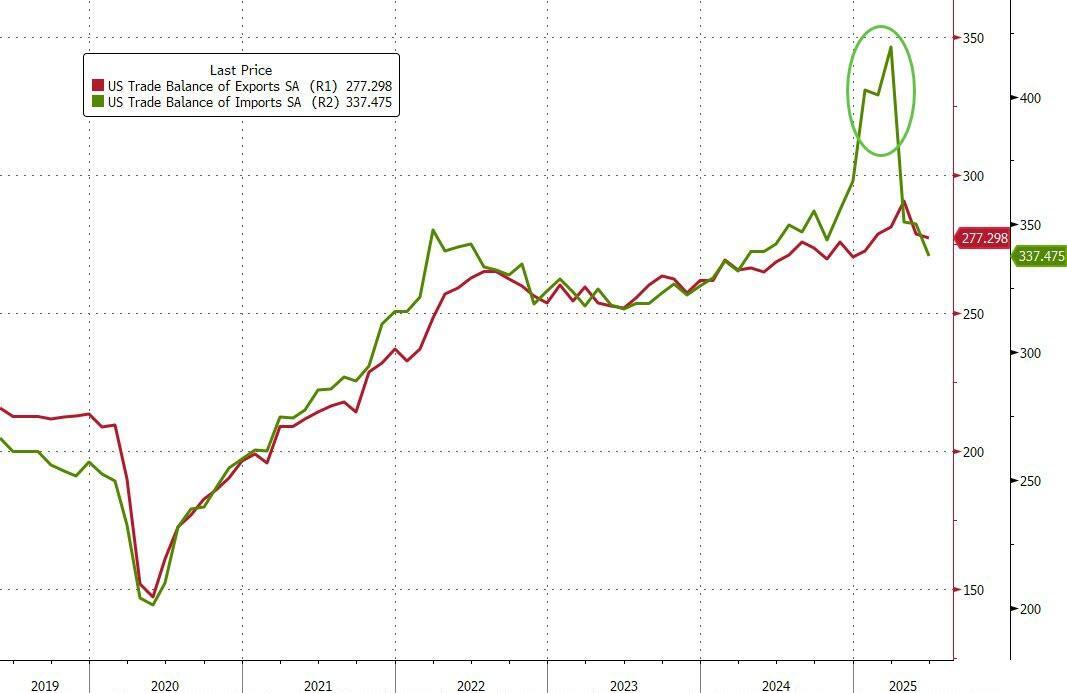 Total imports fell to their lowest since March 2024 while exports dropped to their lowest since January 2025...