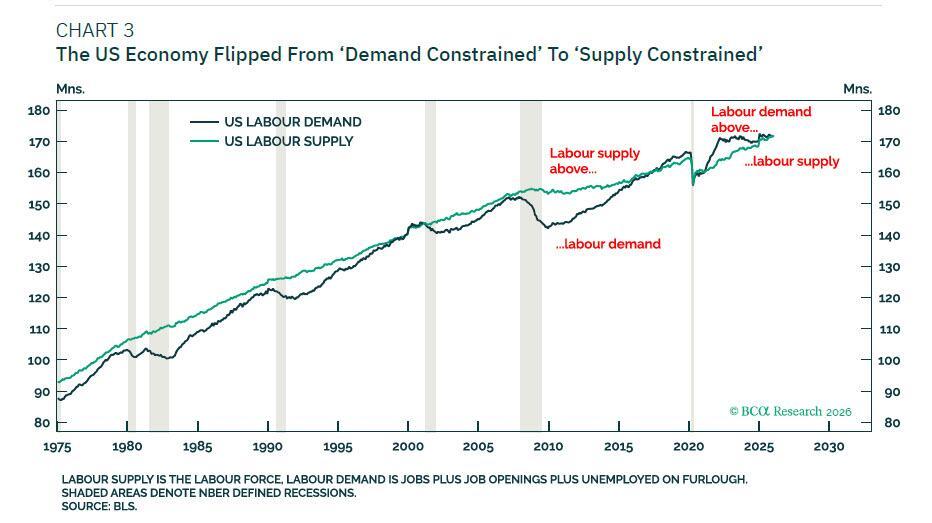 To repeat, faced with the double jeopardy of declining labor demand or declining labor supply, the Fed will turn a blind eye to this structural uplift in wage inflation. It will do this by de facto moving its inflation target to 2.5-3.5 percent. In effect, a Warsh-led Fed will let the US economy run hot.