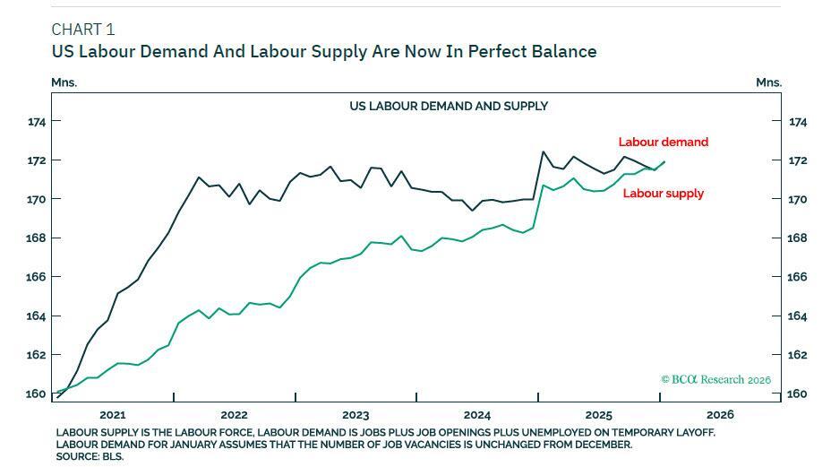 The US economy has reached a watershed. For the first time since the pandemic, labor demand and labor supply are in perfect balance, with both now standing at 172 million workers.