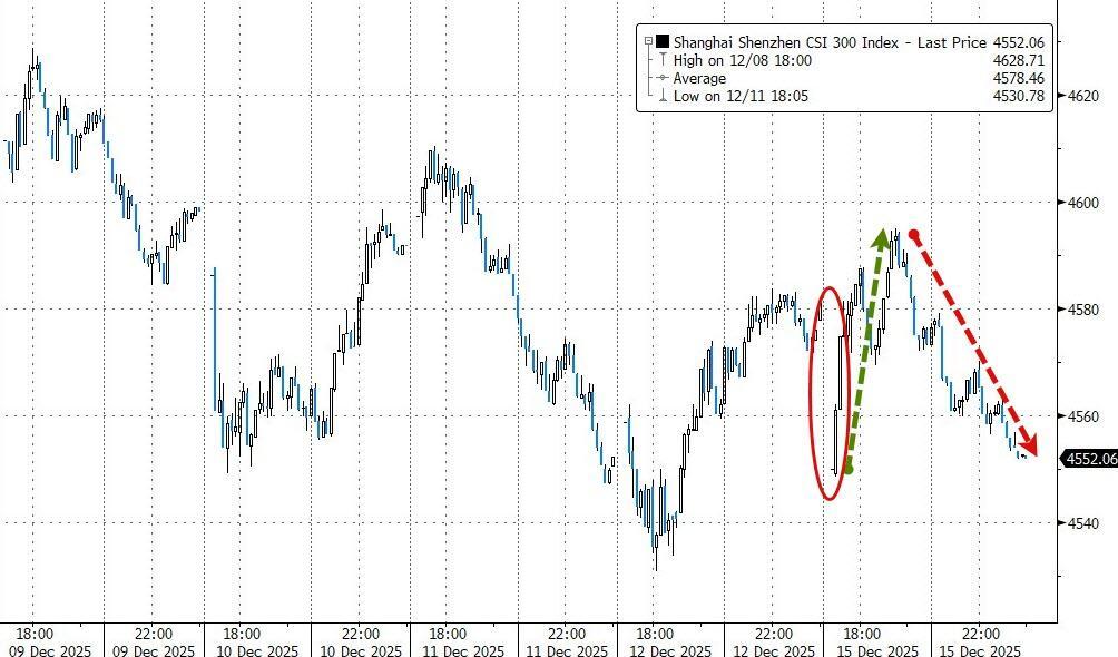 Finally, we note that the initial downturn in Chinese stocks was quickly bid back into positive territory after the 'bad data' as it appeared 'bad news' would be 'good news' from a 'most stimmies' perspective, but Xi's rant dragged stocks down to end the day in the red...