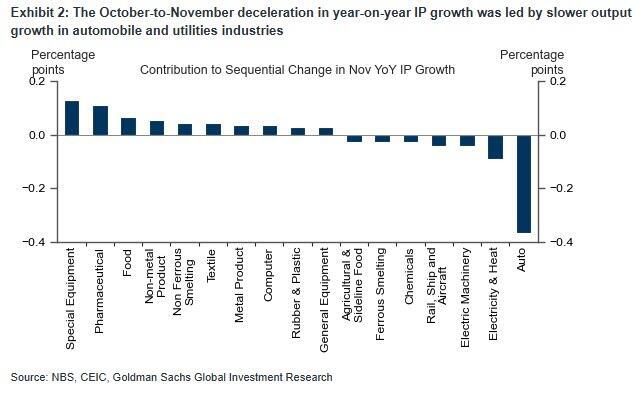Incorporating October-November activity data, Goldman's GDP tracking model based on the production approach points to a small downside risk to our Q4 real GDP growth forecast of 4.5% yoy.