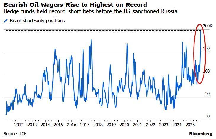 Ahead of the rally, money managers boosted bearish positions on the global benchmark by 40,233 lots to 197,868 in the week ended Oct. 21, according to ICE Futures Europe. That's the most on record... providing a lot of ammunition for a sizable short squeeze...