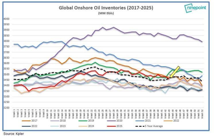 "...onshore inventories have FALLEN by 39MM Bbls in the first 20 days of October, and are actually the tightest to the 5 year average in ~ 4 months. It wasn't supposed to be like this!"