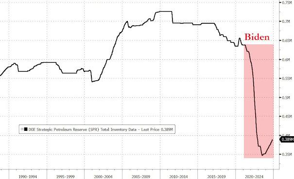 Having made it clear that US energy is a core spoke of Trump's economic revitalization strategy, the president-elect's transition team is putting together a wide-ranging energy package to roll out within days of his taking office that would approve export permits for new liquefied natural gas (LNG) projects, increase oil drilling off the U.S. coast and on federal lands, and accelerating the replenishing of the Strategic Petroleum Reserve largely drained by Biden who did everything in his power to prevent oil prices from rising.