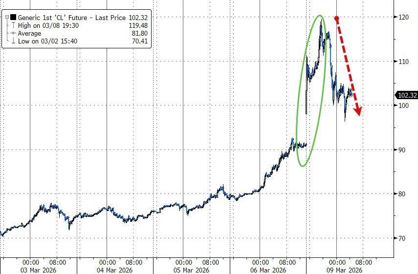 This desperate circus act by G-7 leaders suggests that the energy shock rippling through the system could be historic, especially as an IRGC spokesperson warned of $200/bbl crude prices.