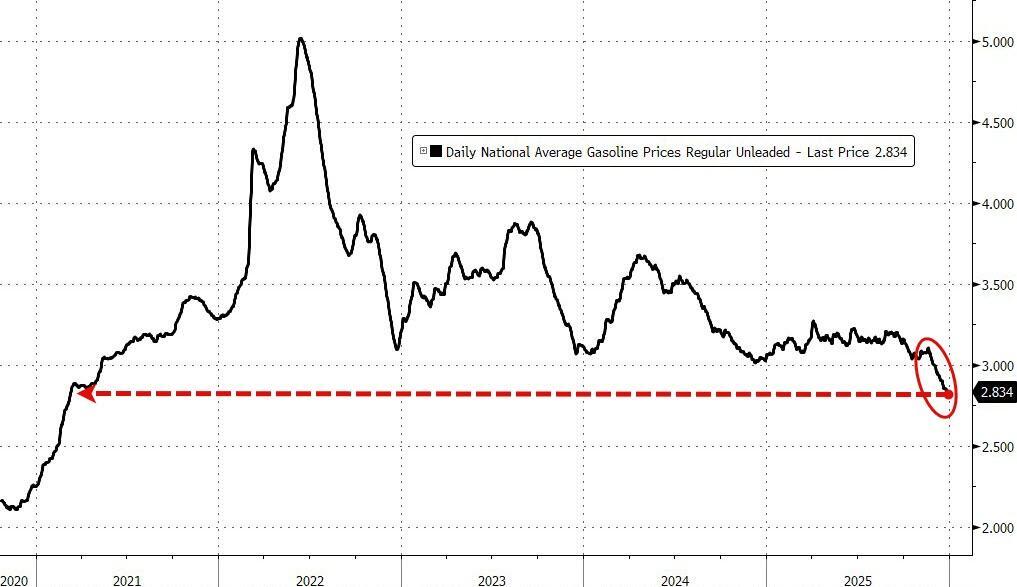 Gas prices continued their sharp downward trend throughout December, falling by nearly 23 cents over the month to a national average of $2.75 per gallon on Dec. 29—the lowest level recorded since 2021, according to a report by fuel price comparison app GasBuddy.