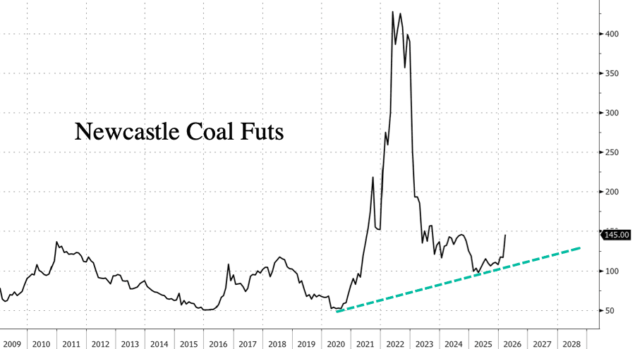 We cited Dart's note earlier this month that showed natural gas prices across Europe and Asia have jumped so much during the US-Iran conflict that gas and oil to coal switching has already been viewed favorably by power grid operators.