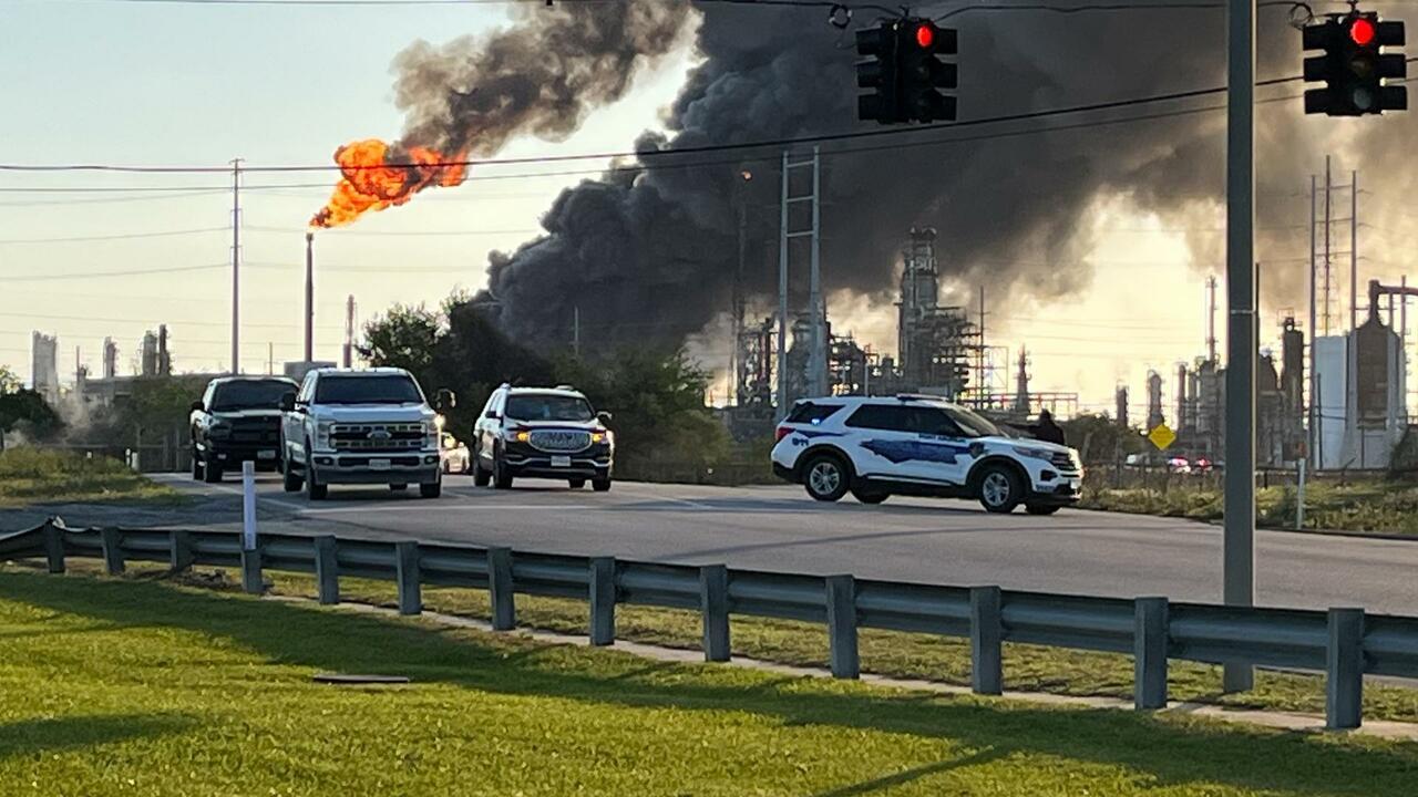 The Texas Department of Transportation urged drivers to avoid the area, asking motorists to steer clear of SH 87 and SH 82 near the refinery.