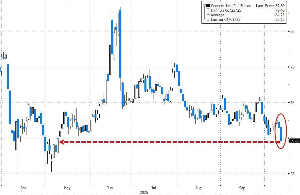 WTI is trading back below $60 for the first time since early May on cautious optimism about easing tensions in the Middle East and the outlook for a global supply surplus.