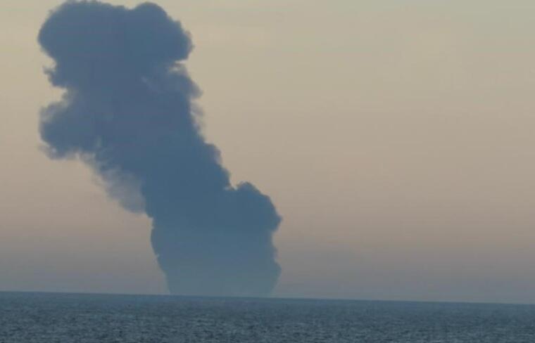 While all initial reports have pointed to a sea mine explosion, there remains the possibility that a drone could have caused the explosion and damage. A rapid plume of smoke just after the strike could be observed all the way from eyewitnesses on the Turkish coast.