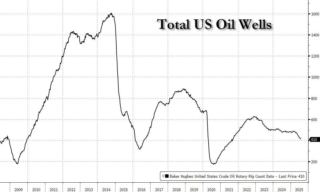 Three months ago, then-CEO of Diamondback Travis Stice made waves when he declared that US shale-oil production had peaked, a forecast that shook the industry. It was also accurate (for now): since then, domestic crude drilling activity has dropped by 12% to the lowest in almost four years.