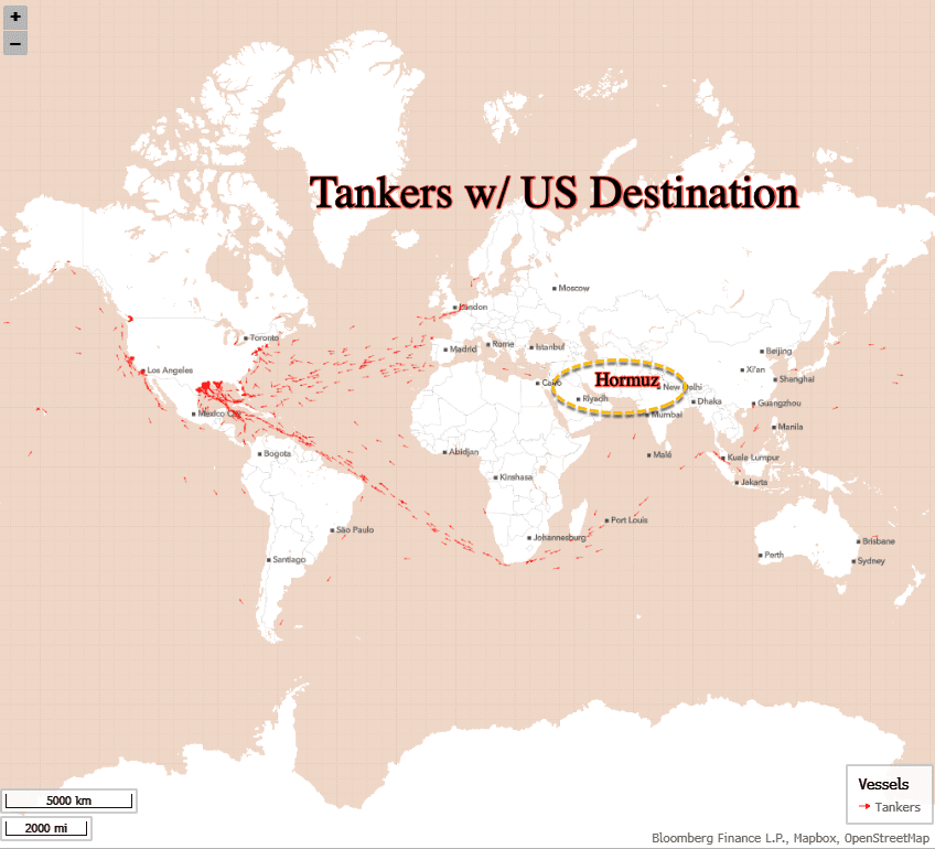 In fact, the latest vessel-tracking data transmitted via the Automatic Identification System, supplied by Bloomberg, show that it is quite possible that America has become the world's emergency gas station.