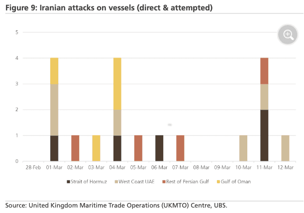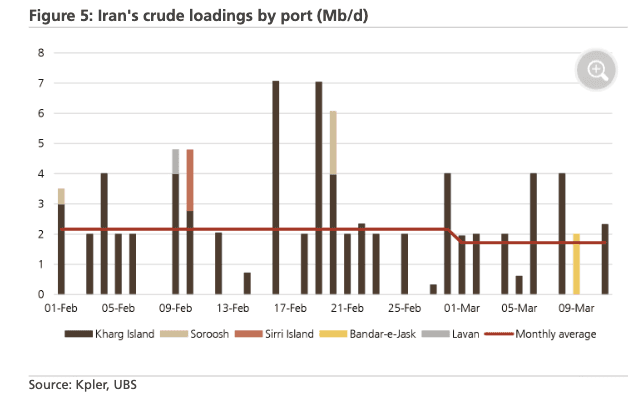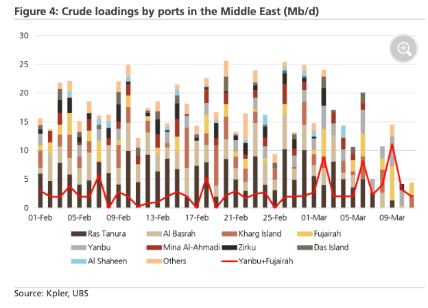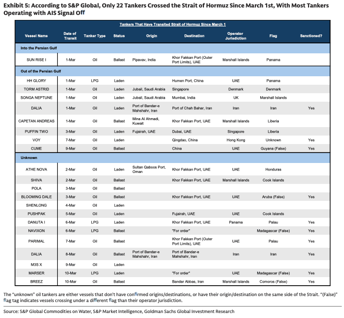 In addition to UBS, Goldman's tracking of Persian Gulf exports also shows limited activity through the strait.