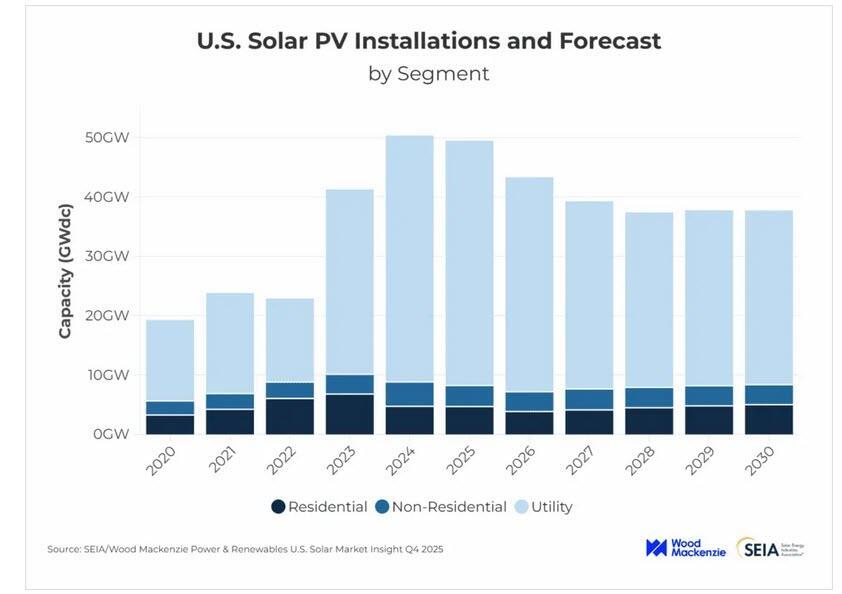 As OilPrice reported, the industry added 11.7 gigawatts direct current (GWdc) of solar power capacity in the third quarter of 2025, up by 20% from a year earlier and a massive 49% surge compared to the second quarter. That was the third-largest quarter for deployment in the industry’s history, the Solar Energy Industries Association (SEIA) and Wood Mackenzie said in the U.S. Solar Market Insight Q4 2025 report.