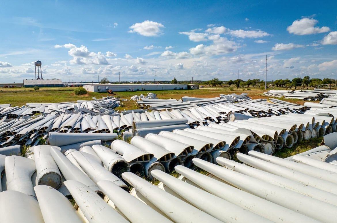 Discarded wind turbine blades are seen in a field next to the Sweetwater Cemetery in Sweetwater, Texas, on Oct. 4, 2023. Brandon Bell/Getty Images