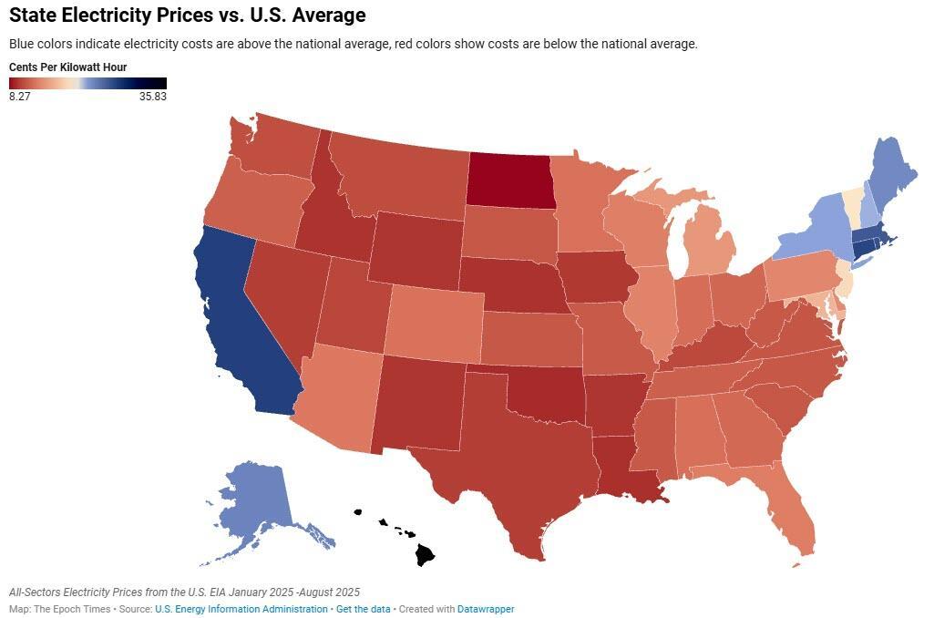 A December 2025 study by the Institute for Energy Research found that 86 percent of the states with electricity prices above the national average were Democrat-led, or “reliably blue.” All of the five states with the highest electric bills had mandates requiring that 100 percent of their power must come from carbon-free sources.