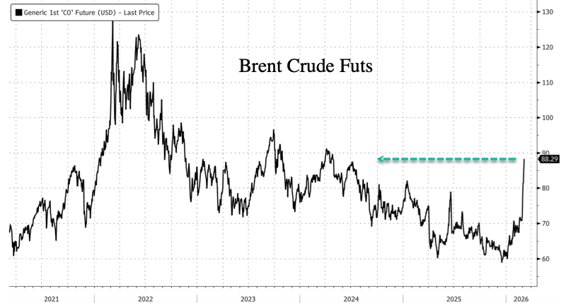 Goldman analysts earlier this week warned about $100/bbl crude oil prices. Disruptions across the Gulf have already sent diesel futures up 40% this week, while central banks are warning of a possible inflation spike.