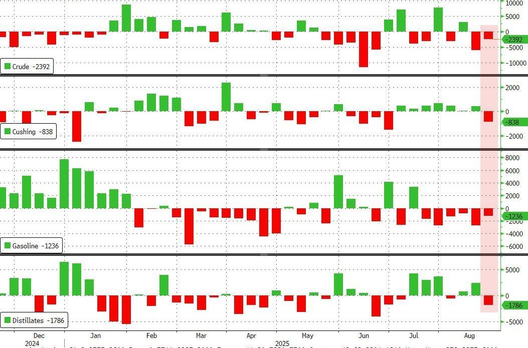 Official data showed a bigger than expected (and larger than API reported) crude draw. Additionally products saw inventory draws as stocks at the Cushing Hub tumbled for the first time in 8 weeks...