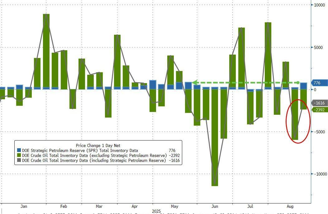 Despite a sizable 776k addition to the SPR (largest since May), US commercial crude stocks still fell for the second week in a row...