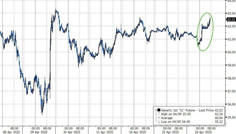 Oil prices are higher this morning on the prospect of US-China trade talks (and after better than expected China macro data last night and an implicit suggestion that Beijing will do 'whatever it takes' to maintain the illusion of 5% growth). Prices shrugged off the surprise build in crude stocks reported by API last night.