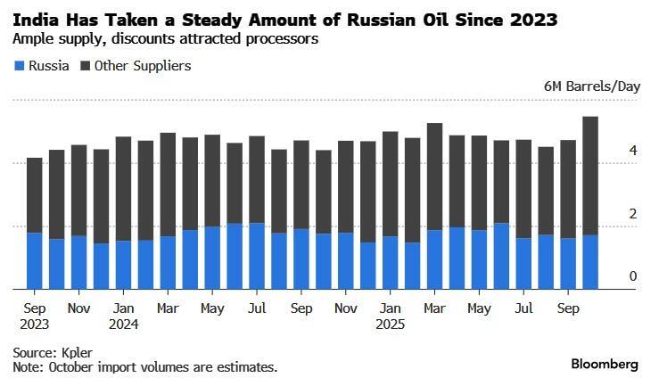 India’s oil refiners said they expect to reduce - not stop - the purchase of Russian crude, a move that could squeeze global supply, following remarks by Trump that the South Asian nation would halt all buying.
