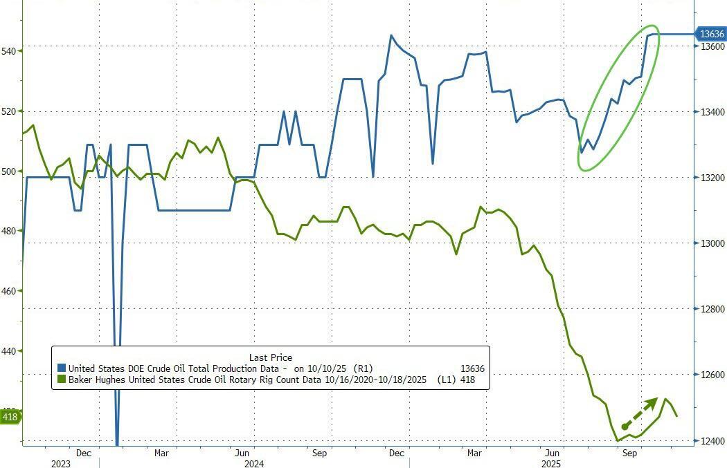 US Crude production rose once again, to a new reocrd high at 13.636mm b/d...
