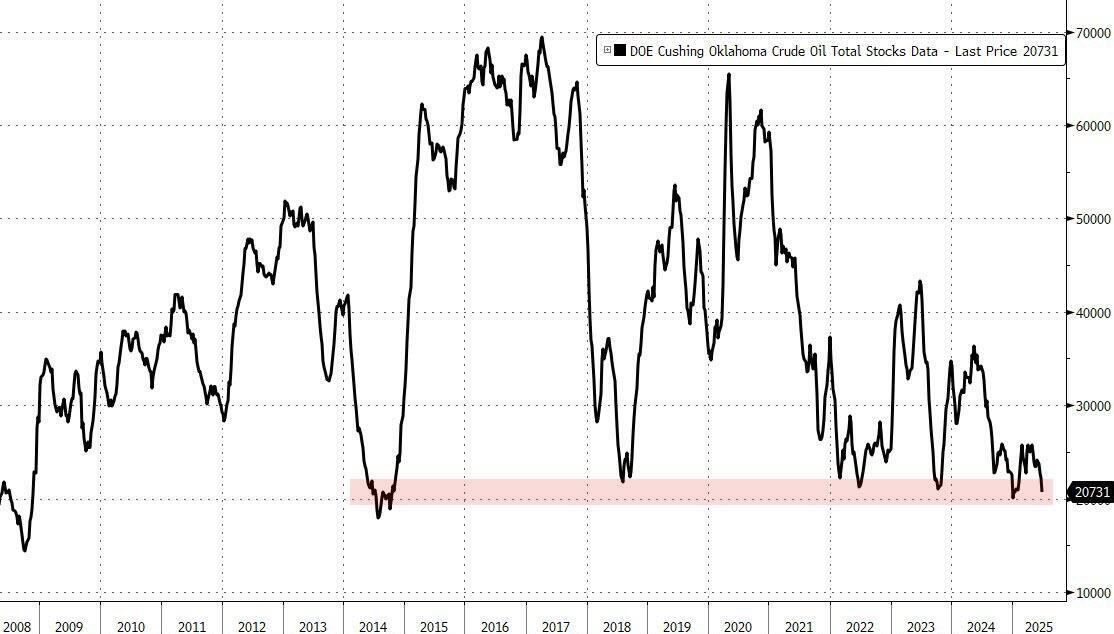 WTI Rebounds As 'Tank Bottoms' Loom At Cushing Hub After Big Draw