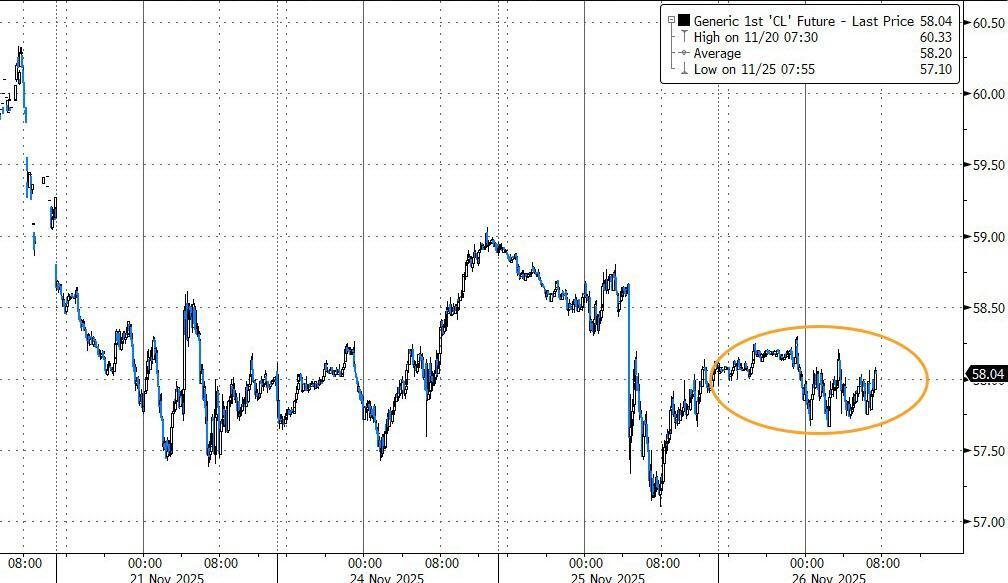 WTI is hovering around $58, near one month lows...