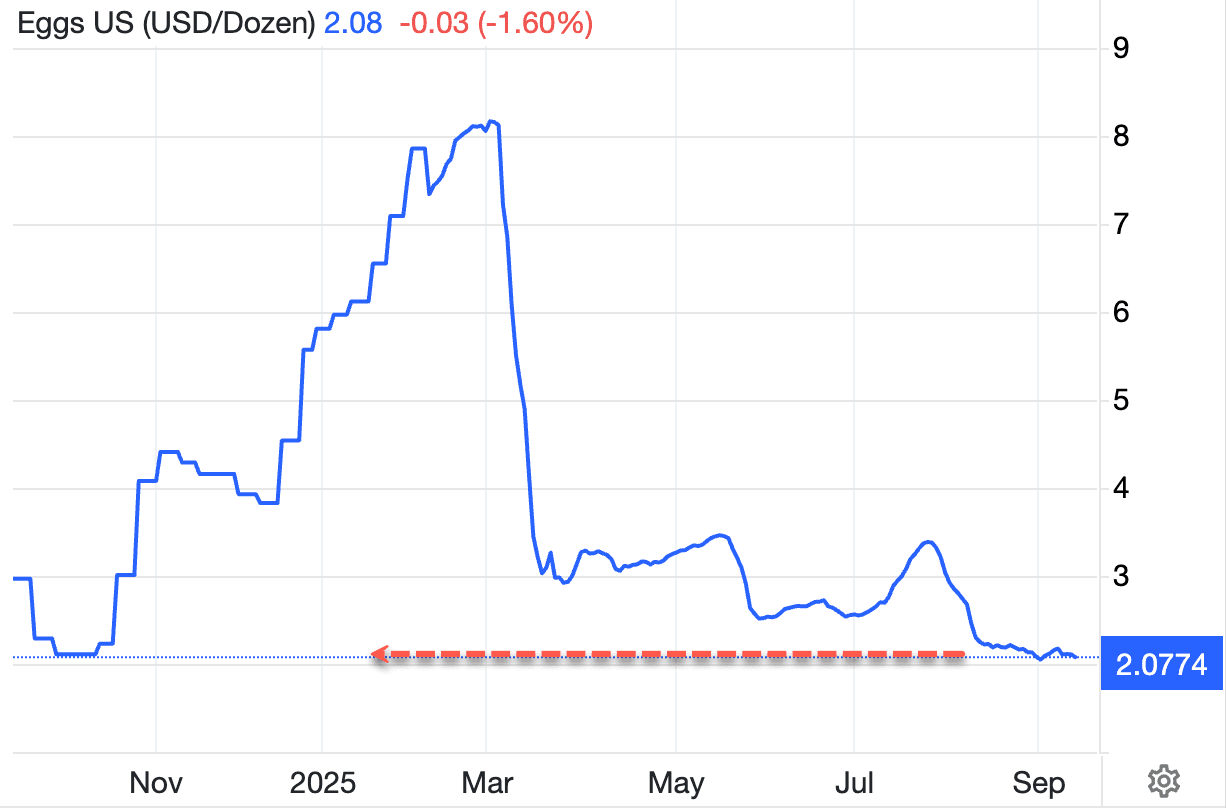 Egg prices are back to pre-crisis levels.