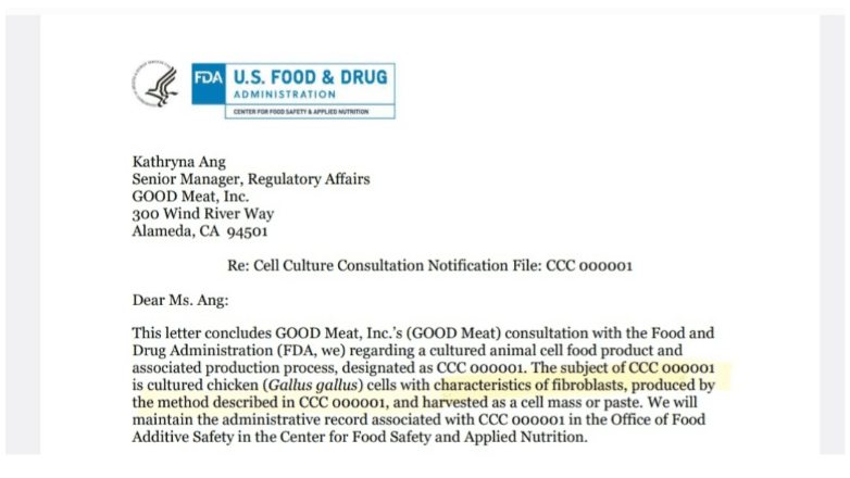 By 2023, the FDA had issued a "No Questions Asked" approval for lab-cultivated "chicken cells with characteristics of fibroblasts."