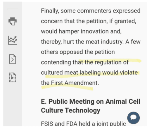 Since early 2020, FSIS has gone round-after-round with "stakeholders" about what to call this petri-dish creation. During the last round of "name the thingamajig" stakeholders warned the FSIS that transparent labeling would "hamper innovation," and "violate the First Amendment."