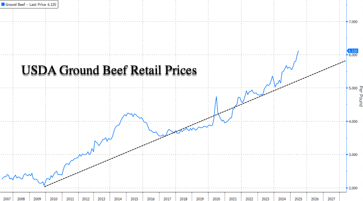 This comes as the latest USDA cattle report shows America's cattle and calves herd population has fallen to 94.2 million, its lowest mid-year level since 1973. The nation's shrinking herd size has pushed USDA retail ground beef prices to record highs...