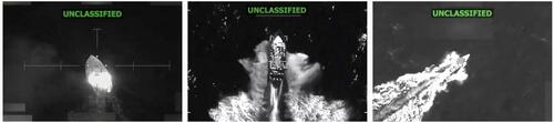 (Left) A vessel used for drug smuggling burns after the U.S. military struck it in the Eastern Pacific, in this screengrab taken from a handout video released Dec. 18, 2025. (Center) A still taken from footage of a boat strike targeting drug trafficking in the Eastern Pacific on Dec. 4, 2025. (Right) A still taken from footage of a strike on a drug boat in the Caribbean on Nov. 6, 2025. U.S. Southern Command/Handout via Reuters, @Southcom/X, @SecWar/X