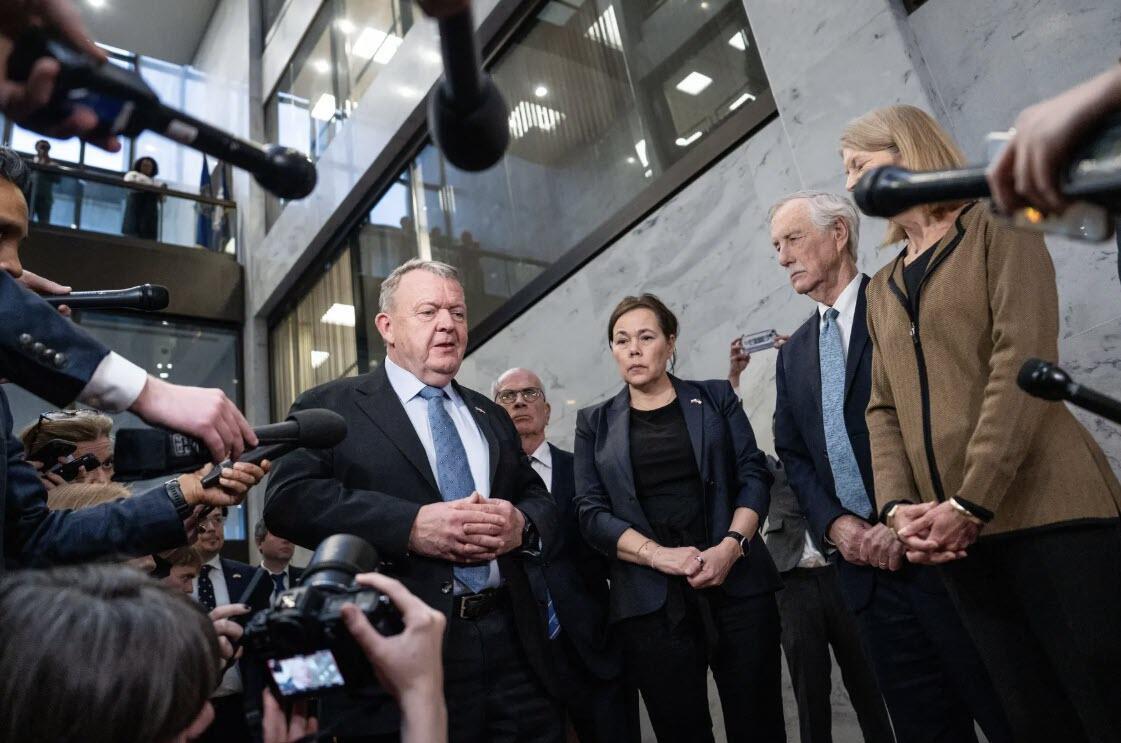 Danish Foreign Minister Lars Loekke Rasmussen and Greenlandic Foreign Minister Vivian Motzfeldt speak to the press after a meeting with lawmakers on Capitol Hill in Washington on Jan. 14, 2025. Madalina Kilroy/The Epoch Times