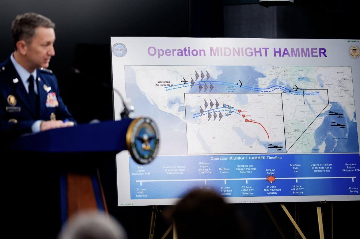 Chairman of the Joint Chiefs of Staff Air Force Gen. Dan Caine discusses the mission details of a targeted strike on Iran during a news conference at the Pentagon in Arlington, Va., on June 22, 2025. President Donald Trump addressed the nation last night after three Iranian nuclear facilities were struck by the U.S. military. Andrew Harnik/Getty Images