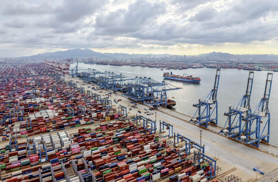 Shipping containers are seen at the port in Qingdao, in China's eastern Shandong Province on Aug. 12, 2025. China and the United States delayed higher tariffs on each other's imports for 90 days, hours before a trade truce between the world's two largest economies was due to expire on Aug. 12. STR/AFP via Getty Images