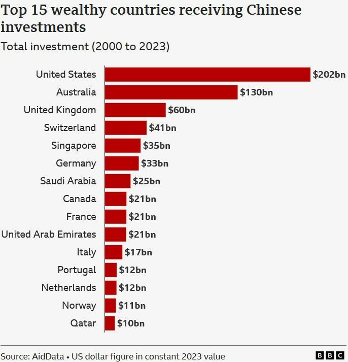 New research now suggests the Wright USA case was not an anomaly, but one instance in a vast global pattern. AidData, a research lab at William & Mary, has completed what it calls the first comprehensive tally of China’s state-backed investments abroad. Its findings, shared in advance with the BBC, show that Beijing has spent $2.1 trillion overseas since 2000 - roughly half in developing countries and half in advanced economies such as the United States, the United Kingdom, Germany, and Australia.