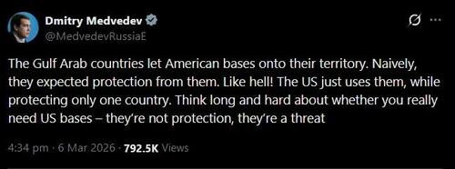 US bases across the Gulf - Bahrain, Qatar, Kuwait, the UAE - were always sold as the physical expression of the guarantee. The muscle that backed the paper. They were protection. Except now those bases are targets. The countries hosting them are getting hit precisely because they host them. What once was “US military presence as shield” has collapsed and became “US military presence as a bullseye”.