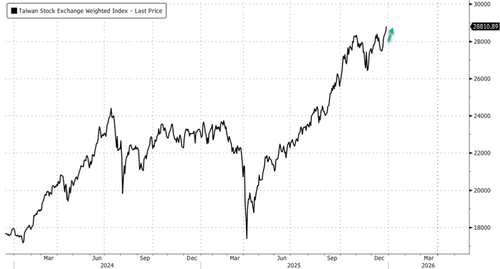 Despite live-fire exercises, the Taiwanese stock market rose to record highs, reflecting a solid AI market theme that remains intact amid traders' disregard for Beijing's invasion-related fears.