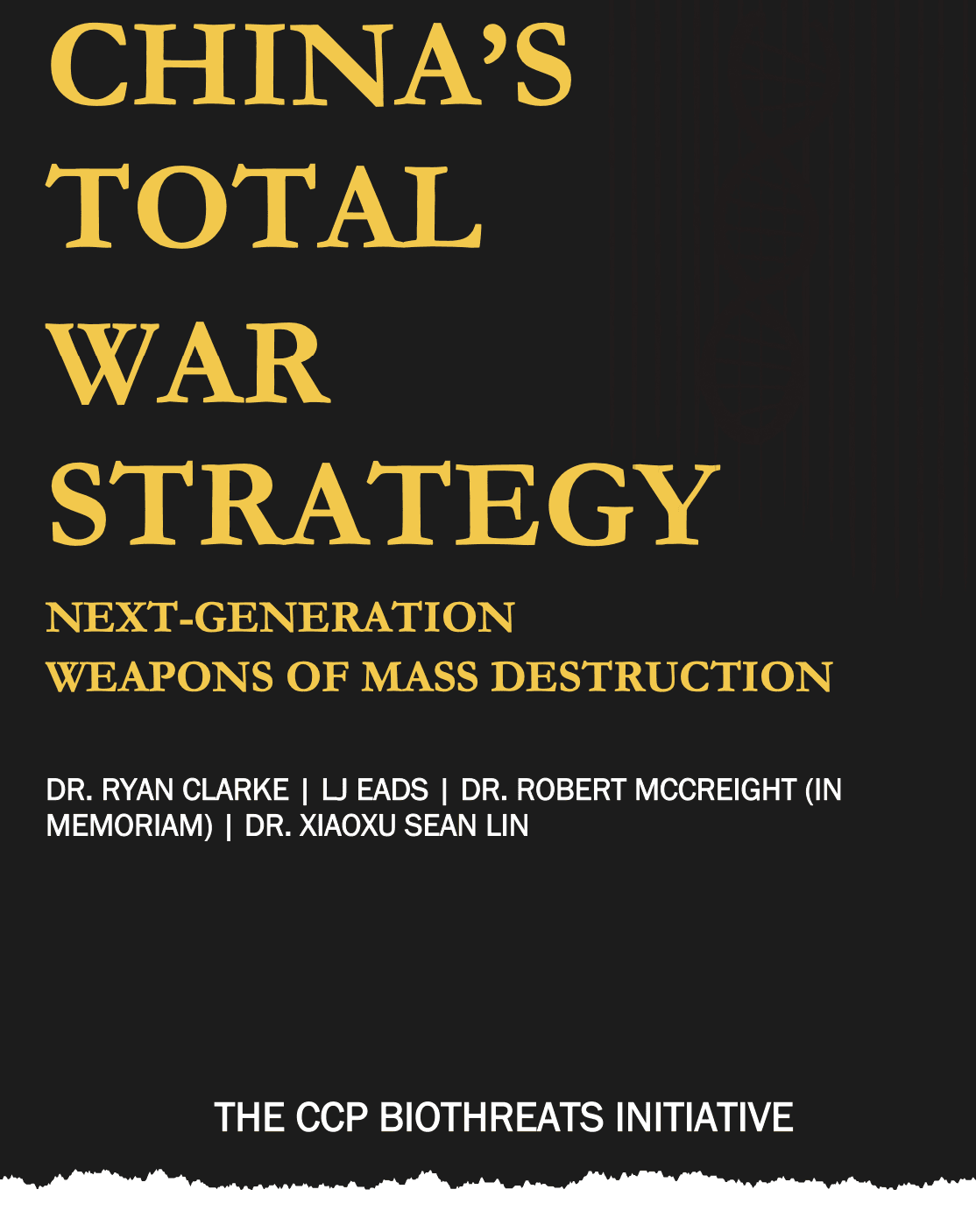 The book China's Total War Strategy: Next-Generation Weapons of Mass Destruction - published by the CCP BioThreats Initiative and authored by Dr. Ryan Clarke, LJ Eads, Dr. Robert McCreight, and Dr. Xiaoxu Sean Lin - outlines how the CCP has been pursuing an aggressive, multifaceted "total war" against the U.S. that leverages next-generation weapons, including synthetic narcotics (e.g., fentanyl and cannabinoids), bioweapons (e.g., Covid-19), psychological manipulation and influence (e.g., TikTok), and a broad arsenal of irregular warfare tools.