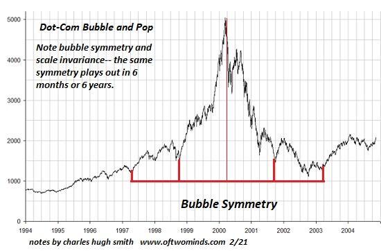 Note that all credit-driven asset bubbles pop. Yes, the market is rigged, but that doesn't mean it always goes up or it's easy to catch the declines. The dot-com bubble lost 80% of its peak valuation despite assurances that was "impossible."