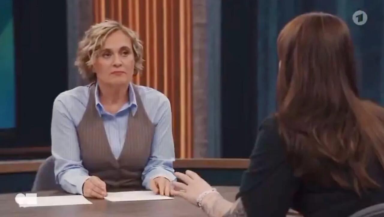 This woman is Caren Miosga; she hosts a popular Sunday evening political talkshow for ARD, another German state media broadcaster. This past Sunday, Miosga interviewed the leading Left Party politician (and TikTok star) Heidi Reichinnek: