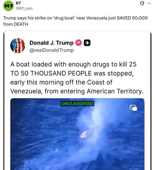 The US Secretary of War Pete Hegseth announced a new attack against a drug trafficking boat in international waters near Venezuela, resulting in four drug traffickers killed. pic.twitter.com/AiDsgEcBXU