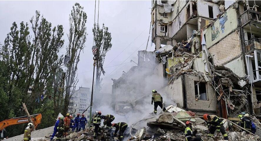 The casualty toll is so high as a nine-story apartment building collapsed after being hit, and ten children were among the wounded. An hours-long search has been underway by emergency crews who are picking through the rubble, hoping to locate more people alive.