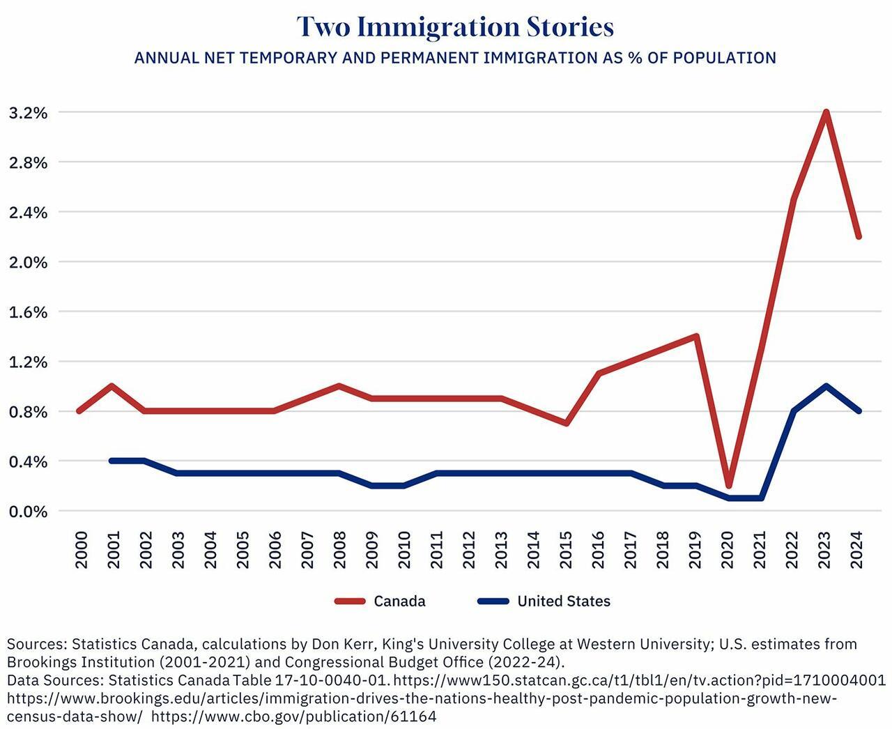 For decades, Canada enjoyed all-party, across-the-spectrum support for immigration. The arrival of new people at consistently higher rates than in Western Europe or the United States did not drive political polarization. This country took in far more immigrants than America relative to the size of its population, and had been doing so for decades, without signs of backlash. Instead of a Left-Right clash on immigration, there was a boring all-party consensus.