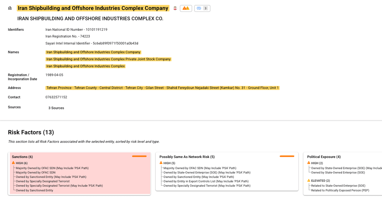 Public trade data compiled by counterparty and supply chain risk intelligence firm Sayari shows that the U.S. government has sanctioned ISOICO. These sanctions are part of broader U.S. efforts to restrict Iran's maritime and defense sectors across critical maritime chokepoints.