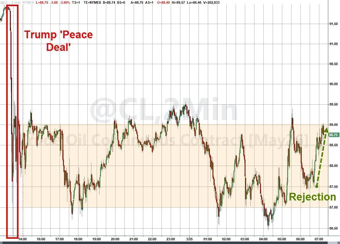 Iran's Fars citing informed source on ceasefire Wednesday: Iran Does Not Accept Ceasefire, Says US Talks Illogical: Fars. The statement says that talks are not viable in current conditions. Oil jumps on the headline: